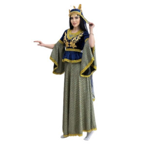 Qadınlar üçün nəzərdə tutulmuş bu lacivərd məxmər zərli dəst klassik milli üslubu parlaq detallar ilə birləşdirir. Üst hissə yumşaq məxmərdən hazırlanıb, sinə və qollarda qızılı aplikasiyalarla bəzədilib; kəpənəkvari geniş qollar hərəkətdə axıcı siluet yaradır. Dəst uzun, naxışlı-metalik parıltılı ətəklə tamamlanır və ümumi görünüşə zərif kontrast qatır. Uyğun baş örtüyü və bəzək haşiyələri kompozisiyanı bütövləşdirir.