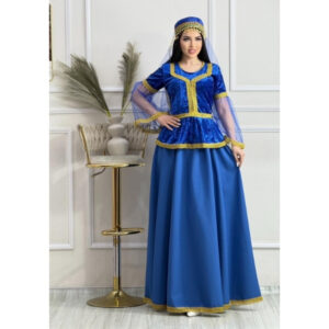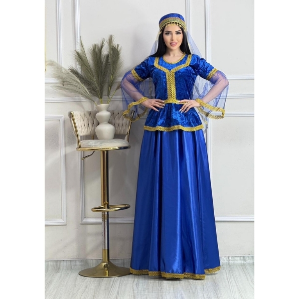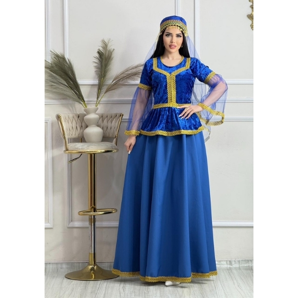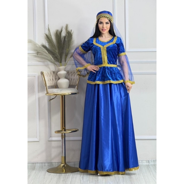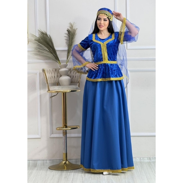 Qadınlar üçün Parlaq Göy Azərbaycan Milli Geyimi