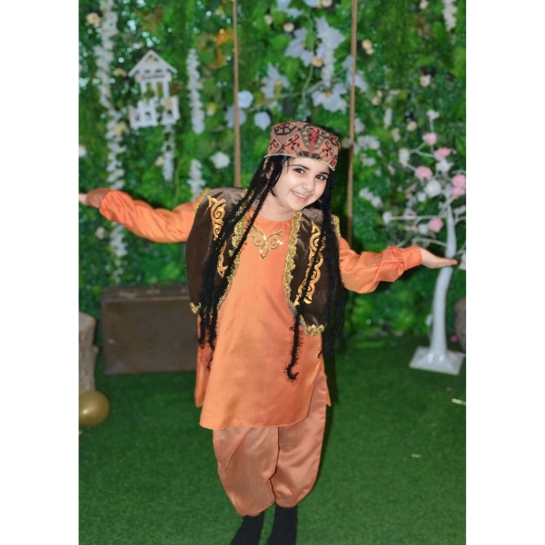 Qız Uşaqları üçün Narıncı Azərbaycan Milli Geyimi Azərbaycan xalq geyimlərinin zəngin mədəni irsini uşaqlar üçün zərif və rahat formada əks etdirən xüsusi bir modeldir. Bu milli geyim klassik Azərbaycan üslubuna uyğun hazırlanmış, rəng seçimi və detalları ilə diqqət çəkən ənənəvi dizayna malikdir.